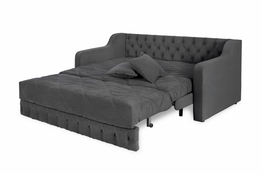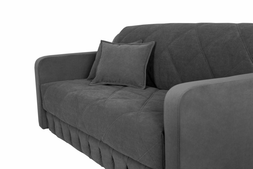 Прочный металлокаркас с ортопедическими ламелями. Ровное спальное место НПБ (независимый пружинный блок). Съемный стеганный чехол. Каретная стяжка на царге и спинке дивана.