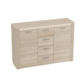 Комод оснащен четырьмя выдвижными ящиками на роликовых направляющих и двумя вместительными отделениями за распашными дверцами.
